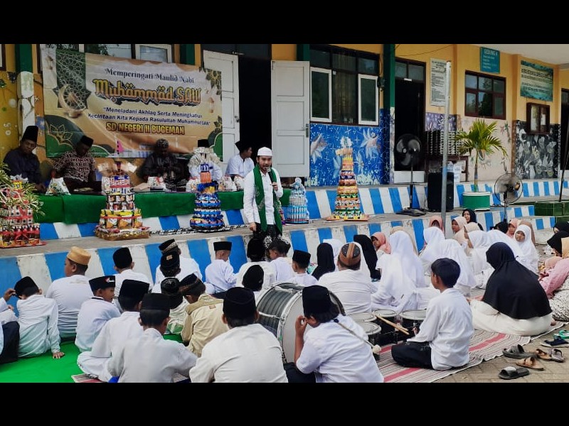 Syukur! SD Negeri II Bugeman sukses menyelenggarakan peringatan Maulid Nabi Muhammad SAW dengan penuh rasa syukur, suka cita, dan kegembiraan. Acara ini mengusung tema “Membangun Karakter Unggul dengan Akhlakul Karimah” dan dilaksanakan di lingkungan sekolah pada hari Selasa (16/09/2025).